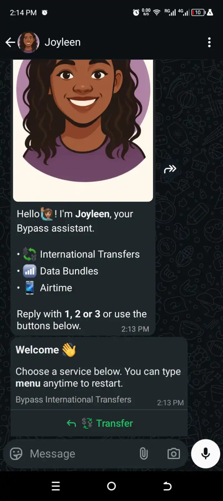 Seamless money transfers, instant recharges, and a live AI assistant — all available right on WhatsApp. Explore how fast and global Bypass truly is.